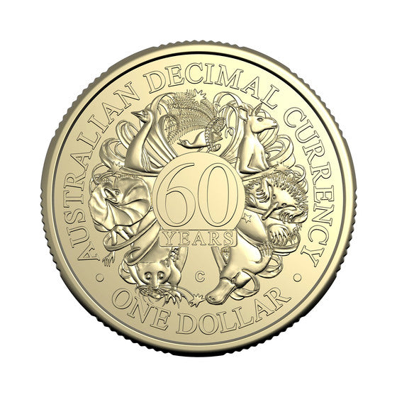 This engaging four-coin set celebrates sixty years of Australian decimal currency. Elements from all eight standard circulating coins released by the Royal Australian Mint since 1966 have been skillfully combined in the reverse design on all four coins. While the packaging graphics celebrates the Australia's historic Changeover Day on 14 February 1966.